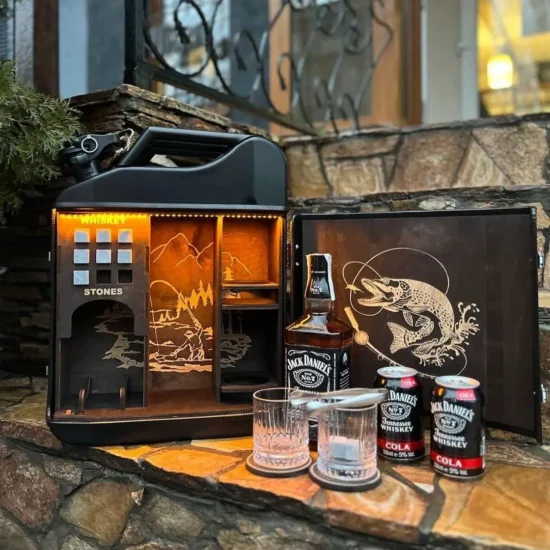 Kanisterbar Minibar 20 L Jim Bean mit Zigarren Box Halb Tür