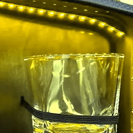 Das Innere der Minibar ist mit Holz und Stoff ausgekleidet, wodurch Flaschen und Gläser sicher und stilvoll aufbewahrt werden können. Professionelle Pulverbeschichtung – sorgt für satte Farbe und ein gleichmässiges Finish und schützt den Kanister vor äusseren Einflüssen.
