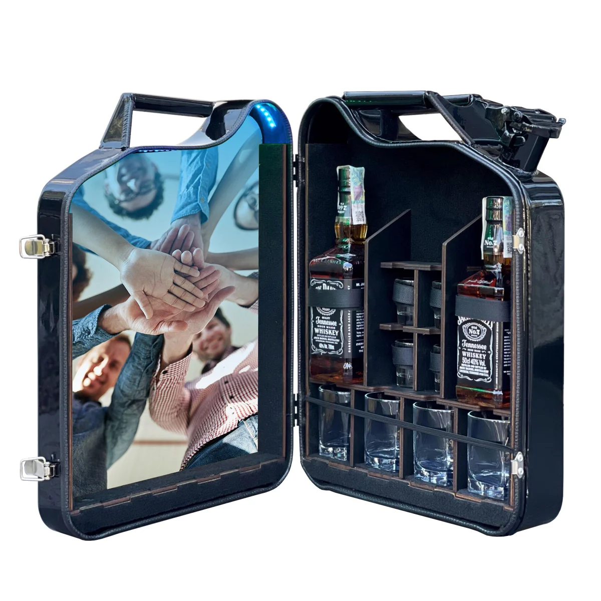 Mit ihrer Kombination aus industriellem Design, persönlicher Gestaltung und beeindruckendem LED-Fotodruck und UBL ist diese Kanisterbar ein Geschenk, das garantiert begeistert.