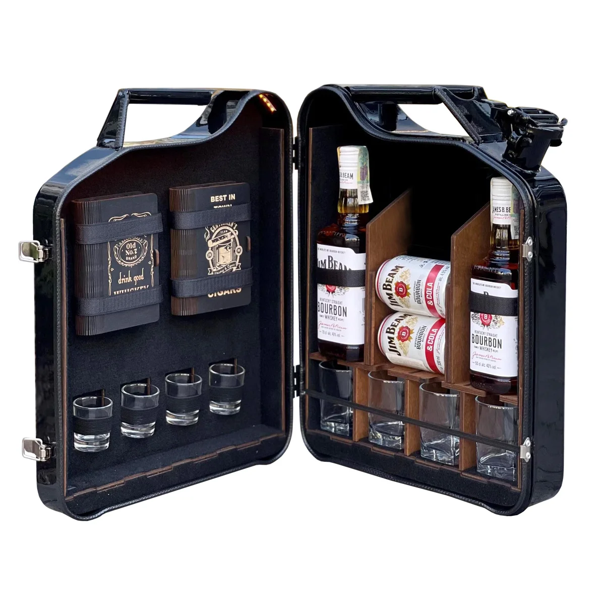 Unsere Mini-Bar aus einem echten 20-Liter-Metallkanister ist eine perfekte Kombination aus brutalem Design, Qualität und Komfort. Sie ist ein einzigartiges Accessoire, das zu einer Dekoration für jedes Interieur wird und dem Besitzer in jeder Situation Freude bereitet: im Urlaub, in der Garage, im Büro oder zu Hause.